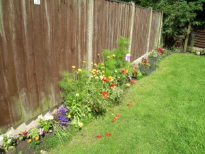 The grass has a small border between it and the fences and much of this was in the shade of the tree’s canopy. The Committee tried planting a small length of it with bedding plants in 2010 and that brightened the area up. Bulbs were planted for early colour in 2011 and more bedding plants. We decided to extend the bedding for this season around the whole length of the border and with the soil improved the Committee purchased 30 trays of mixed bedding and a packet of bee friendly seeds. Some members of the Gardening Circle planted it up for us and the results have bloomed.